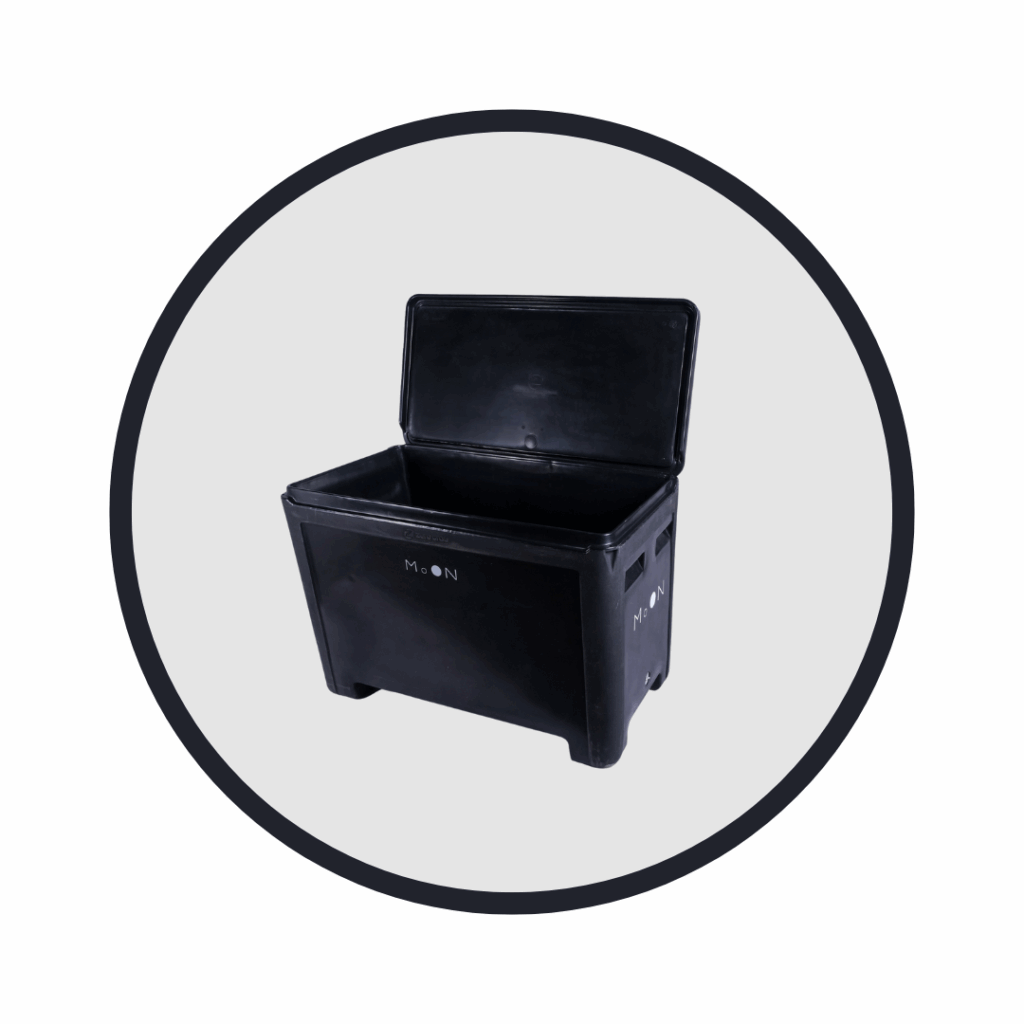 Caixa Preta 180L. Cor: preto. Tipo: sem tampa. AxLxCxP: 48,5cm x 56cm x 89cm (Medidas aproximadas).